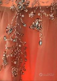 Vendo abito in tulle con profonda scollatura e ampia gonna usato per poche ore ,made in Italy taglia 42 completo di porta abiti.