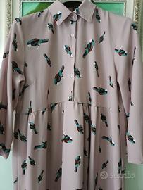 Abito con pappagalli , lunghezza 85 cm,seno 50 cm, spalle 50 cm.Apertura con 5 bottoni,manica tre quarti.