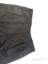 Abito sartoriale elegante gessato da uomo - Giacca monopetto con rever classico - Tre bottoni - Spacchi posteriori - Pantaloni con doppie pince - tessuto inglese in lana - colore grigio antracite scuro - come nuovo - misure equivalenti a taglia 52/54. Indossato pochissimo. Assolutamente privo di difetti o segni di usura.