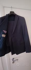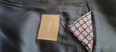 Completo giacca e pantalone da uomo di Paoloni. Comprende giacca monopetto dotata di due bottoni, due tasche con pattina esterna, tre taschini interni e taschino con fazzoletto. Pantalone con chiusura con bottone, gancio e zip, due tasche laterali e due tasche posteriori.