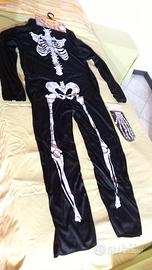 abito unisex taglia L da scheletro con cappuccio, guanti e con maschera abbinata. Nuovo mai usato in tessuto nero elasticizzato. ad un prezzo scontatissimo.
