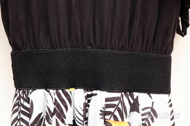 Abito senza maniche mini vintage, in fantasia tucano, apertura a goccia sul retro tramite Cerniera, rouches su giromanica e con gonna ampia.