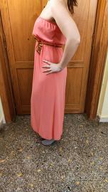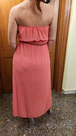 vestito estivo senza spalline lungo, con fodera più corta e cinta in vita colore salmone taglia L, zuiki valuto offerte