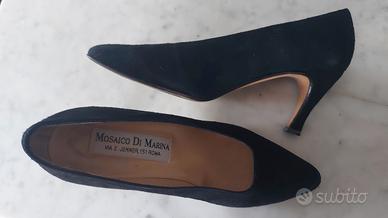 Disponibili anche SUPERBE scarpe décolleté eleganti in pelle camoscio nero e cuoio perfette e pulite. N. 36 1/2.