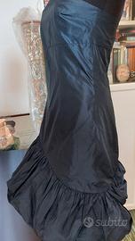 Taffeta' caro, taffeta' cara (cit). abito sera vintage favoloso tessuto cangiante blu/nero. La balza della parte inferiore e' strutturabile a piacere aderente o a corolla. Senza spalline. Vestito taglia 44/46 ma con ottima vestibilita'. chiusura con lampo centrale dietro. Accessori esemplificativi nn compresi.