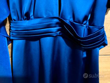 Abiti da cerimonia in seta, prodotto alta sartoria su misura per una cerimonia. Blu. Vestibilità 44/46. Nuovo, indossato in una unica occasione.