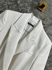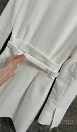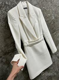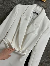 abito vestito del brand zara modello simil blazer a manica lunga, con spalline imbottite, scollo décolleté con revers e cinturino in vita. Colore bianco sposa. Apertura con zip laterale. Taglia XS che veste perfettamente in taglia. Usato solo per un evento; in ottime condizioni. Ideale da usare per eventi e cerimonie quali matrimonio anniversario iscrizione promess di amatrimonio comunione cresima compleanno