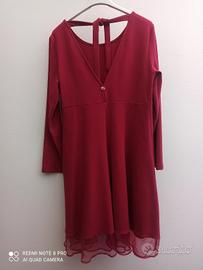 Bellissimo vestito rosso, vestibilità larga (vesto una M e mi sta ancora largo), maniche 3/4, scollatura sul retro, bordo in tulle.