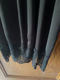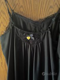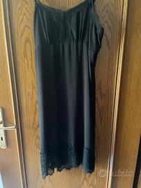 Abito sottoveste nero con spalline sottili, regolabili la parte in alto e nel giromanica ha il pizzo come lo si trova in fondo abito morbido, semi aderente non trasparente con il dettaglio alla schiena cuoricino Silvanaheach ed elastico in pizzo
