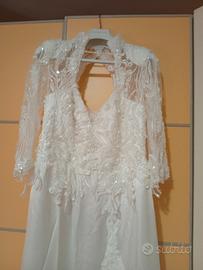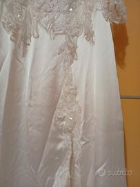 vendo abito sposa sartoriale,ottime condizioni .. tg.44/46 modello scivoloso cn spacco avanti e piccola coda dietro, corpetto in pizzo e gonna in seta ,manica 3/4 ricamata ....vendo x inutilizzo,.. contattare solo se interessati no perditempo