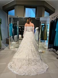 Vendo Abito da sposa Alberto Palatchi collezione 2025 come nuovo ,abito in pizzo con motivo floreale ,gonna ampia con sottotono avorio completo di velo in tulle lungo e maniche in pizzo