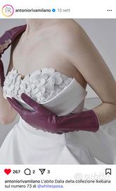 Vendo abito taglia 44, compreso di sottoveste con logo, velo e manicotti in tulle di seta. (+ custodia dell’atelier dove è stato acquistato).