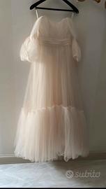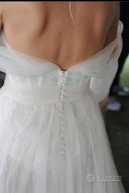 ivory, wedding dress, sheer, lace bodice, removable sleeves, train, spaghetti straps, vintage-inspired, elegant, romantic