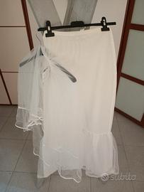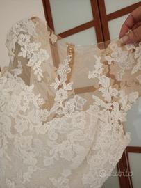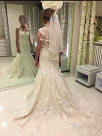 Abito da sposa in pizzo modello sirena con stecche interne busto, fresco di tintoria, comprensivo di custodia, sottogonna e velo con attacco a pettine (nuovo con cartellino).
