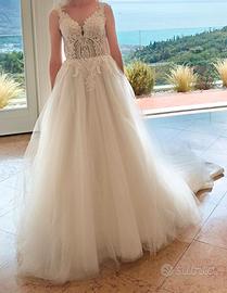 vendo il mio abito da sposa, non so la marca, taglia S, c'e' il cerchio cucito. Prezzo trattabile. Prezzo originale 1200 euro comprato a Brescia atelier outlet Come in una favola. Ritiro di persona.