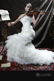 Abito da sposa interamente in pizzo e tulle "Le spose di Mariella Burani" Taglia: 44 - OTTIMA VESTIBILITA' Colore: Panna Il vestito è stato indossato una sola volta ed in perfette condizioni. Prezzo acquisto circa 4000 euro. [PREZZO NON TRATTABILE]