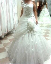 Abito sposa usato in perfette condizioni da vendere, non presenta segni/machie, dopo l' utilizzo e stata lavata professionalmente, modello 2013 di Angela sposi, al tempo costato 2700€, colore avorio, taglia 42, morbido e comodo. Regalo velo e scarpe 37 bianche con strass, stile sabot. Disponibile a Fiumicino/Roma, chiamate serali dopo le 17:00.