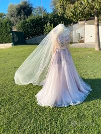 Vendo abito da sposa , nella tenue sfumatura del glicine,completo di velo e sottogonna,acquistato a Luglio 24 ,e che mi ha accompagnato nel mio bellissimo giorno.