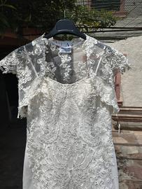 Vendo abito da sposa in pizzo, acquistato nel 2015 a 2100€. Indossato una sola volta, modello elegante e senza tempo. Dettagli: Tessuto: pizzo Colore: Bianco Taglia: M (circa 42-44) Condizioni: L’abito è in buono stato generale, ma: necessita di lavaggio presenta un piccolo strappo nel pizzo (riparabile) Per questo il prezzo è molto conveniente,trattabile!! Perfetto per chi cerca un abito importante risparmiando, con possibilità di sistemarlo secondo le proprie esigenze. Contattami per foto o info!