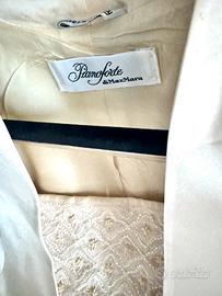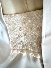 Abito dposa Max Mara taglia46, in pura seta sl 100% con bolero , spalline e zip sul retro. Davanti perline floreali in vetro Come presenta foto su tutto il bordo interno e dietro nel vestito sul fondo presenta macchie Lavaggio a vostre spese in lavanderia Per il resto un vestito ancora molto bello e funzionsle