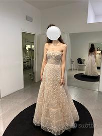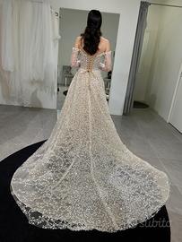 Abito da sposa mod. Coco Milla Nova semitrasparente, completamente ricoperto di paillettes e ricami floreali.