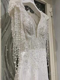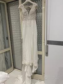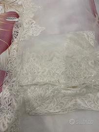 Vendo abito da sposa Mimmagiò con spacco, frange removibili, velo a madonna con lo stesso ricamo del vestito. Prezzo trattabile.