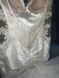 Abito da sposa Nicole, modello a sirena. Indossato quel giorno e portato in lavanderia. Con custodia originale. Pagato 3.500€