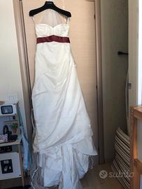 Vendo abito da sposa color avorio con fascia bordeaux (che si può facilmente togliere) taglia 42/44. Zona consegna Borgata del trullo, vicino largo la loggia. Possibilità di provarlo.