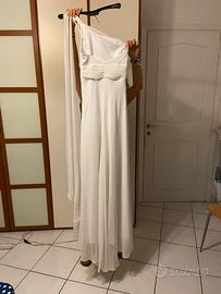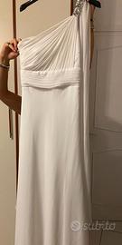 Abito bianco in chiffon lungo con coda dietro. Monospalla com effetto luce . Stilista Lisa Stravolo. Ritiro Metro A baldo degli ubaldi. Taglia 42.