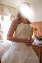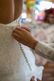 Abito da sposa con corpetto semirigido e con ricami a mano, principesco con strascico.