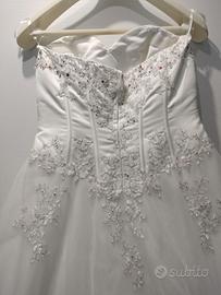 Vendo abito da sposa colore avorio da atelier con tulle e ricami pizzo. Taglia 48. In ottimo stato lavato in lavanderia. Disponibile a dare ulteriori foto e informazioni. No spedisco ma solo ritiro in loco. Completo di velo No copri spalla. Prezzo trattabile