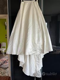 Top in pizzo e gonna in mikado color avorio, originali Rosa Clará. Elegante e raffinato, indossato una sola volta per cerimonia. Il top in pizzo H&M ha scollo profondo e manica lunga, la gonna ha linea ampia con strascio e sottogonne in pizzo. Taglia S