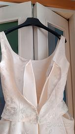 Vendo abito da sposa tg.42 di Atelier Ronca Spose, usato una sola volta, sottoposto a lavaggio professionale in tintoria, tenuto con cura in armadio nella sua custodia originale. Color avorio impreziosito da perline e motivi floreali sul corpetto e strascico, molto elegante nella sua sobrietá. Adatto sia per cerimonia religiosa che civile. Anche le cerniere sono in ottimo stato.