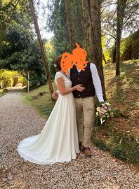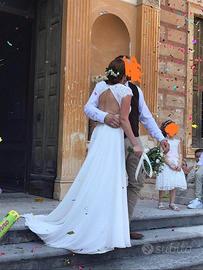 abito da sposa col.off White tg.42/44 con schiena scoperta. (Quindi non sie è molto vincolati sul punto vita)lavato e ripulito in ottime condizioni (tornato come nuovo niente strascicco strappato)