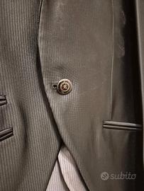 intramontabile abito da cerimonia per sposo stile giovanile color grigio perlato con dettagli come da foto ossia bottoni e fondo giacca a punta.
