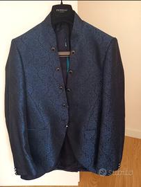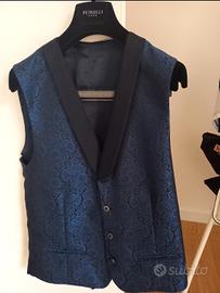 Vendo vestito da sposo marca Petrelli, indossato solo il giorno del matrimonio. L'abito è costutito da: Giacca e Gilè taglia 54 entrambi damascati color blu. Cravatta a strappo coordinata con l'abito con punto luce. Pantaloni taglia 54 color nero. Gemelli con busta di corredo. Abito lavato e stirato. Acquistato nel 2023 da un atelier vicino Firenze per 1290€.