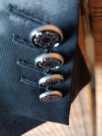 Elegante abito da cerimonia nero lucido con dettagli eleganti.