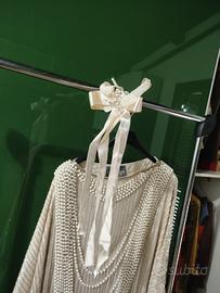 Abito elegante vintage, completamente ricamato con perle e paillettes. Usato da una sposa.