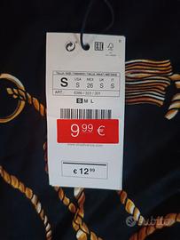 Abito Stradivarius nuovo con cartellino, taglia S, colore nero con raffinata stampa a catene dorate.