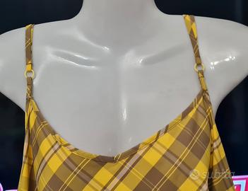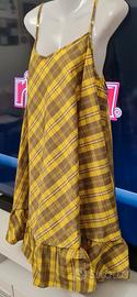 Abito in tessuto scozzese giallo primaverile. Spalline sottili Modello ampio e svasato con comode tasche laterali. Si può indossare con o senza cintura. Rouches nella parte inferiore Taglia indicata S ma veste una M/L Nuovo! Mai indossato