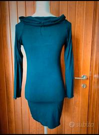 Abito aderente e asimmetrico con collo alto e dettagli di mezze borchie sul davanti.
