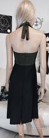 Abito nuovo sartoriale elasticizzato con gonna mezza ruota, spacco dietro e spacco asimmetrico gamba destra