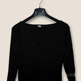Abito a maniche 3/4 in maglia nera, semplice ma raffinato, perfetto sia per il giorno che per la sera. Linea dritta che valorizza la figura senza costringerla.