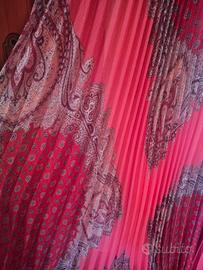 Abito tipo chiffon plissettato con ampia stola in tessuto morbido, stessa fantasia. Taglia 42 ma essendo tagliato solo sotto il seno, può vestire anche una 44. Lacci regolabili e completamente foderato con tessuto color carne.
