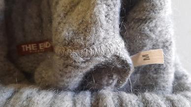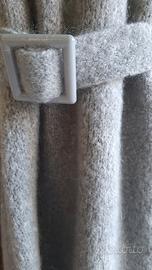 smanicato, colore grigio, taglia M, in acrilico e mohair che lo rende morbidissimo, con cintura dello stesso tessuto.
