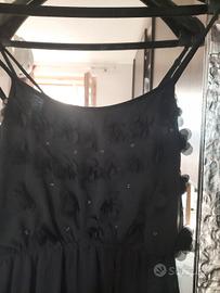 vendo abito elegante corto sotto e lungo sopra con inserti floreali nella parte superiore. nero . taglia s . marca baby angel