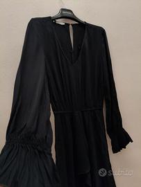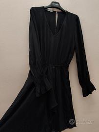 Abito nero con scollo a V a maniche lunghe. Va a stringersi in vita e si allarga dalla parte della gonna, dietro ha chiusura a bottoni. Nelle maniche presenta finitura a voilà carinissima. Necessita ovviamente un lavaggio per togliere le grinze. Tg. etichetta 44, vestibilità M. Misure spalle 40cm, distanza ascelle 50cm, lunghezza maniche 60cm, lunghezza totale da spalla a giù 95cm. #vinteditalia #estate #vestito #jeans #femme #shorts #vintedfrance #vintedspain #vintedcloset #vintagestyle #fashion #chic #vintage #summer #winter #autumn #spring #indie #hipster #aesthetic #alternative #basic #sport #indie #kids #mancheslongues #man #scarpe #uomo #vendocapi #saldi #sales #outfitoftheday #outfit #set #sconti #arte #art #woman #gold #silver #abito #vestitino #dress #cute #kawaii #coquette #crochet #japan #korean #qipao