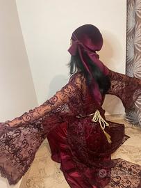 l’abito ricamato a mano, chiamato takchita. La parte sotto è di seta, mentre quella sopra è un tessuto che traapare ed è ricamato. È un abito da cerimonia. Contattarmi per ulteriori info