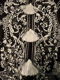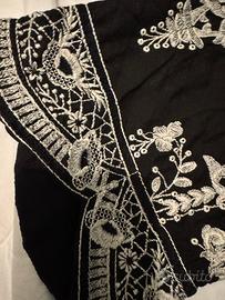 Elegante abito tradizionale pakistano con un bellissimo ricamo. - Colore nero con dettagli bianchi. - Maniche lunghe. - Orlo decorato. Spacchi laterali. Taglia M.