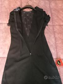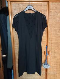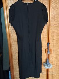 Elegante vestito tubino nero con un design raffinato trasparente con pois neri.Maniche corte Scollo a V in tulle elasticizzato Abito nero elegante in lana ed elastico con triangolo anteriore in tulle ricamato e maniche uguali, cerniera posteriore le misure sono lungo 48cm spalle 38cm ascelle 40 cm usato x una ricorrenza importante 🤴 lavato in lavanderia e sotto le ascelle ha una lievissima scoloritura nel tull che penso sia legato ai prodotti chimici che hanno utilizzato x lavarlo😞 comunque sia non ha difetti di altro tipo è di ottima manifattura 🤴 vendo anche il bolero abbinato come si vede in foto 👀le mie pagine